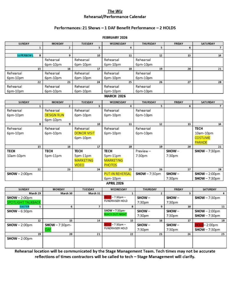 Rehearsal and Performance Schedule: